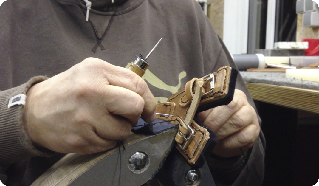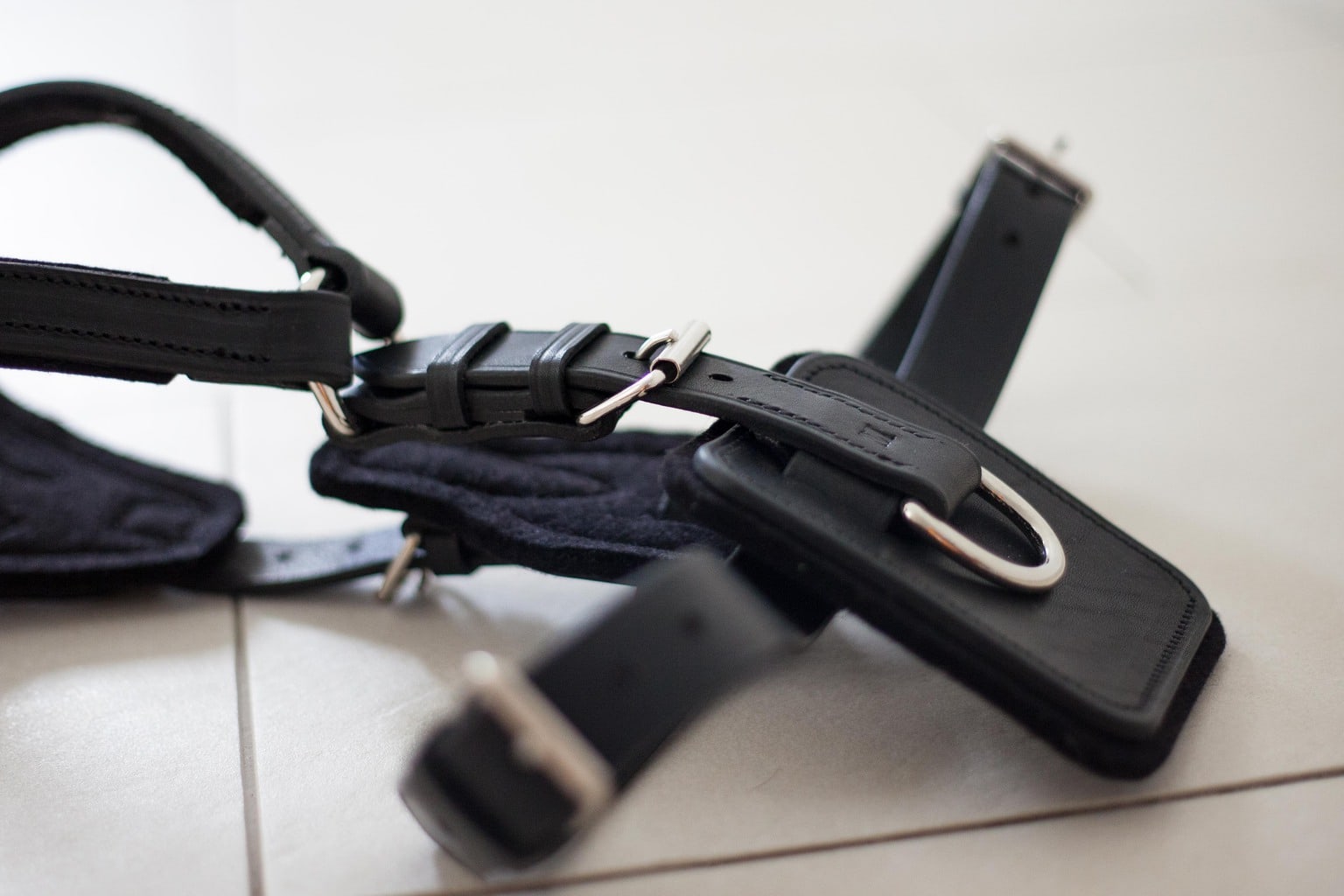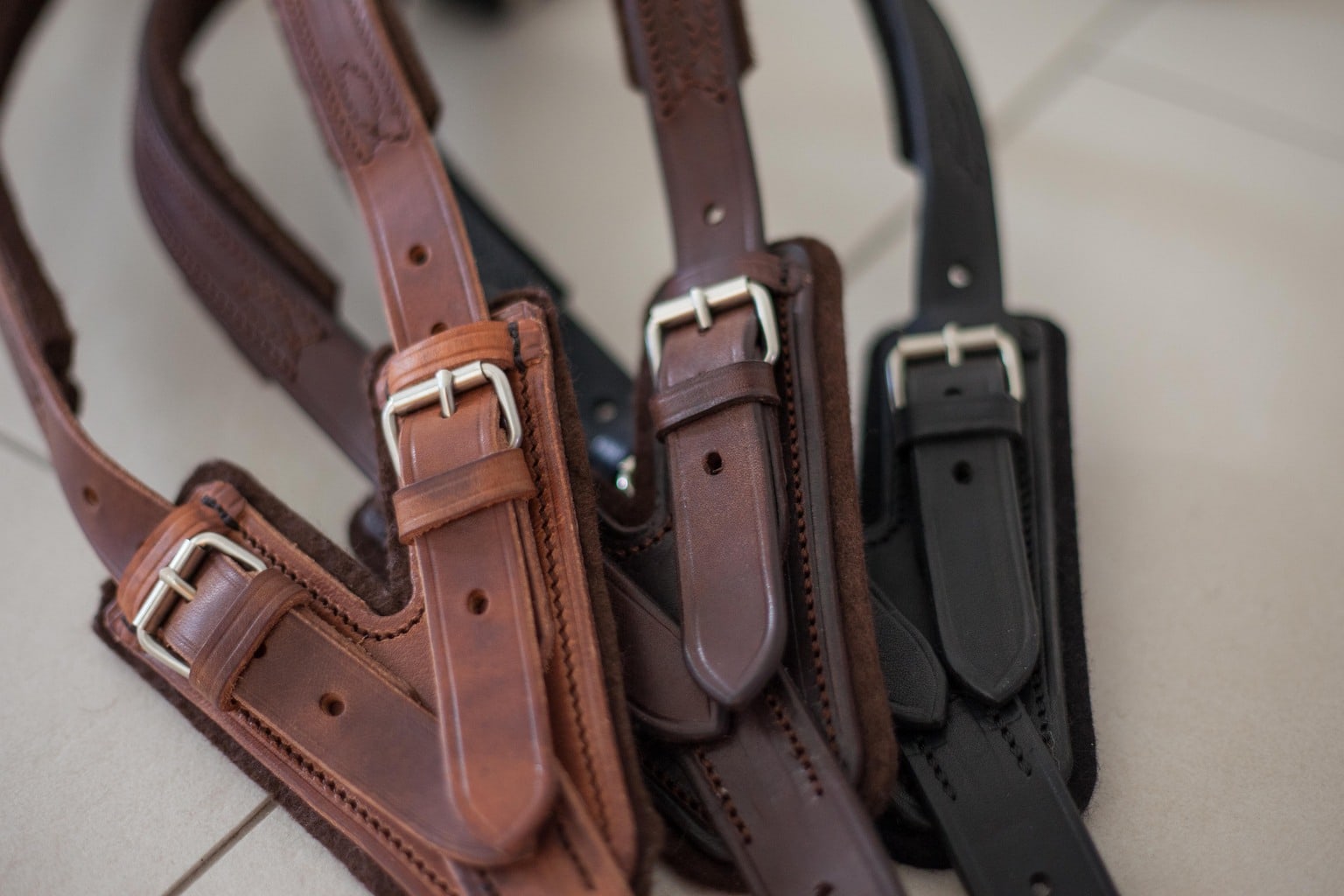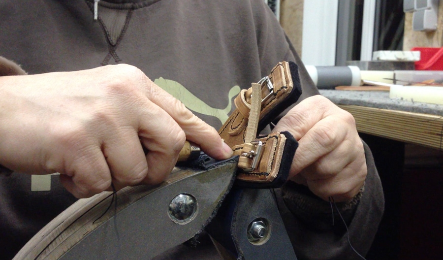 Das verstellbare und unterfütterte Ledergeschirr wird in Handarbeit in einem deutschen Meisterbetrieb hergestellt. Es ist in verschiedenen Größen erhältlich und zusätzlich verstellbar.